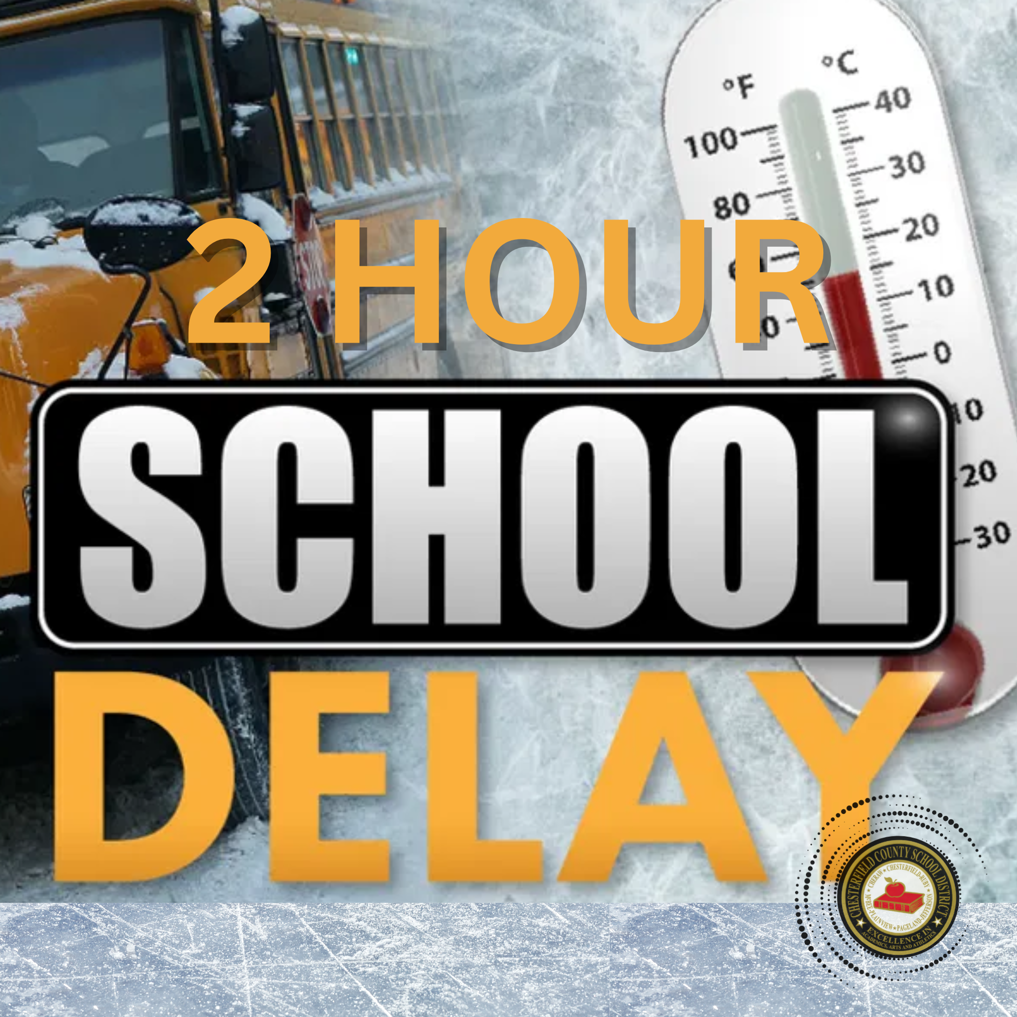 Due to continued weather conditions and early morning temperatures expected to be around 16 degrees, Chesterfield County School District will operate on a two hour delayed start on Tuesday, January 27, 2026.